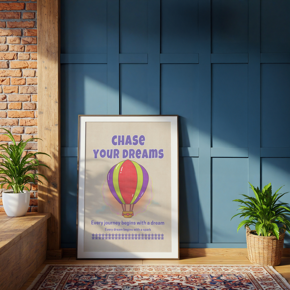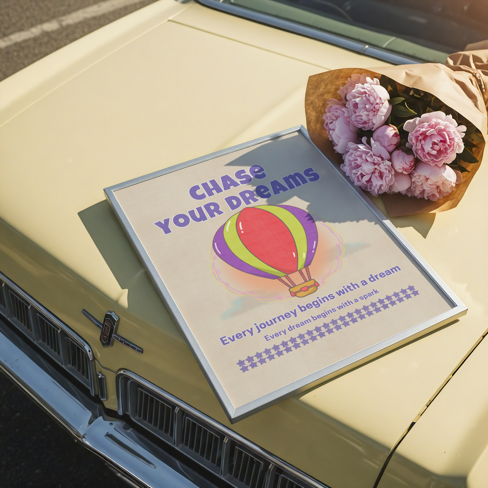 Featuring the inspiring message "Chase Your Dreams", this design celebrates growth, adventure, and the courage to follow your heart.