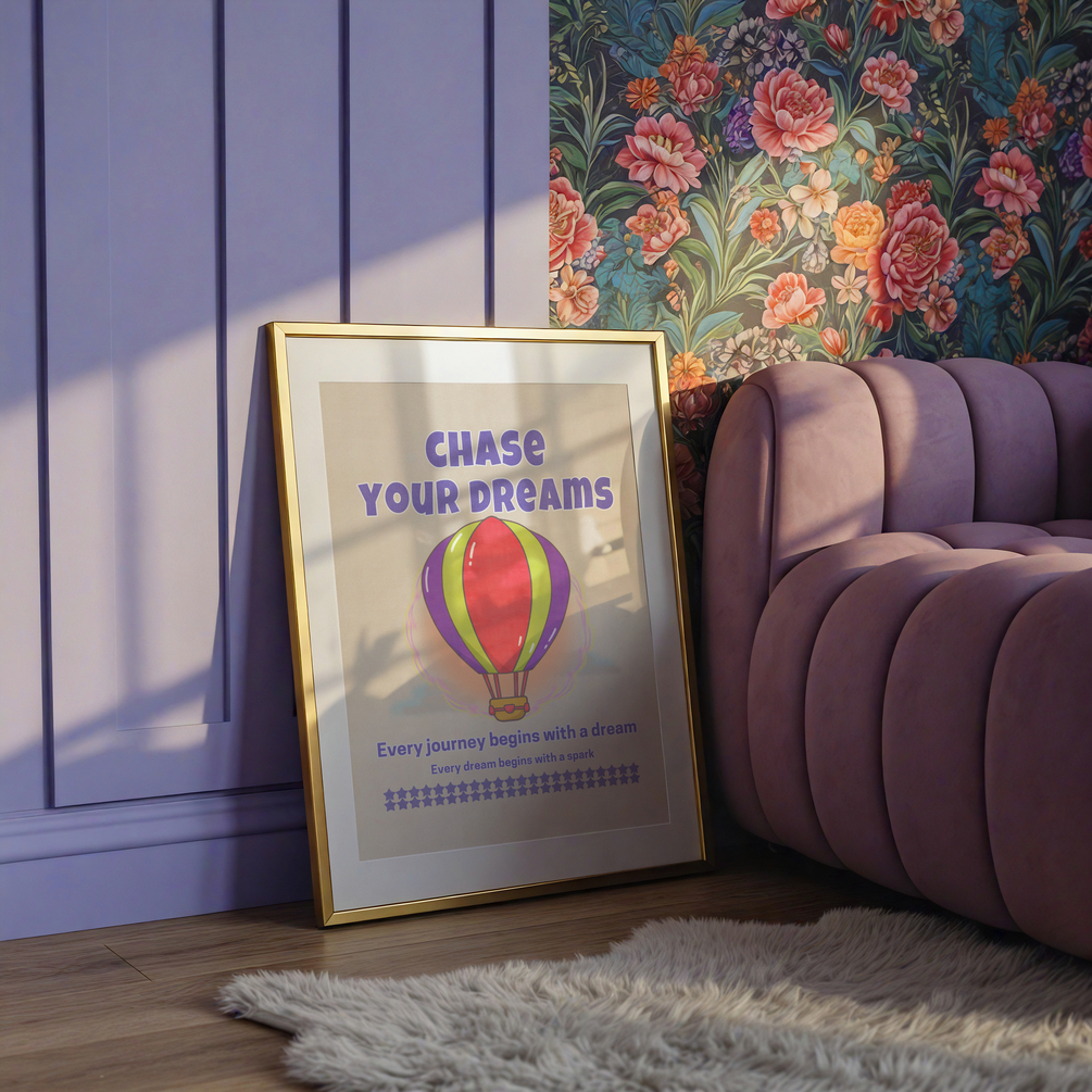 Chase Your Dreams – Hot Air Balloon Printable Wall Art | Retro Graduation, Birthday, New Job Gift