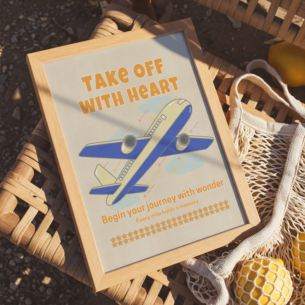 Its soft color palette and minimalist layout make it a timeless piece for your walls or a meaningful gift for aviation lovers, wanderers, or anyone embracing a journey ahead.